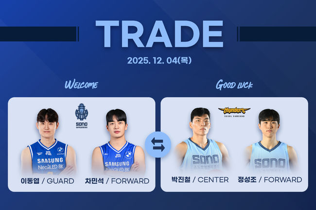 [OSEN=서정환 기자] 서울 삼성과 고양 소노가 트레이드를 통해 전력 보강에 성공했다.