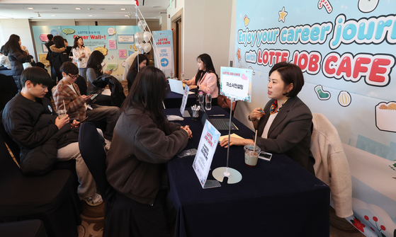 부산·울산·경남지역 취업준비생을 대상으로 취업정보를 제공하는 롯데그룹의 ‘2025 윈터 롯데 잡카페’가 4일 부산 부산진구 롯데호텔에서 열렸다. 그룹 내 10개 계열사 14개 직무 채용담당자·현직자들이 1:1 직무 상담 등을 진행했다.