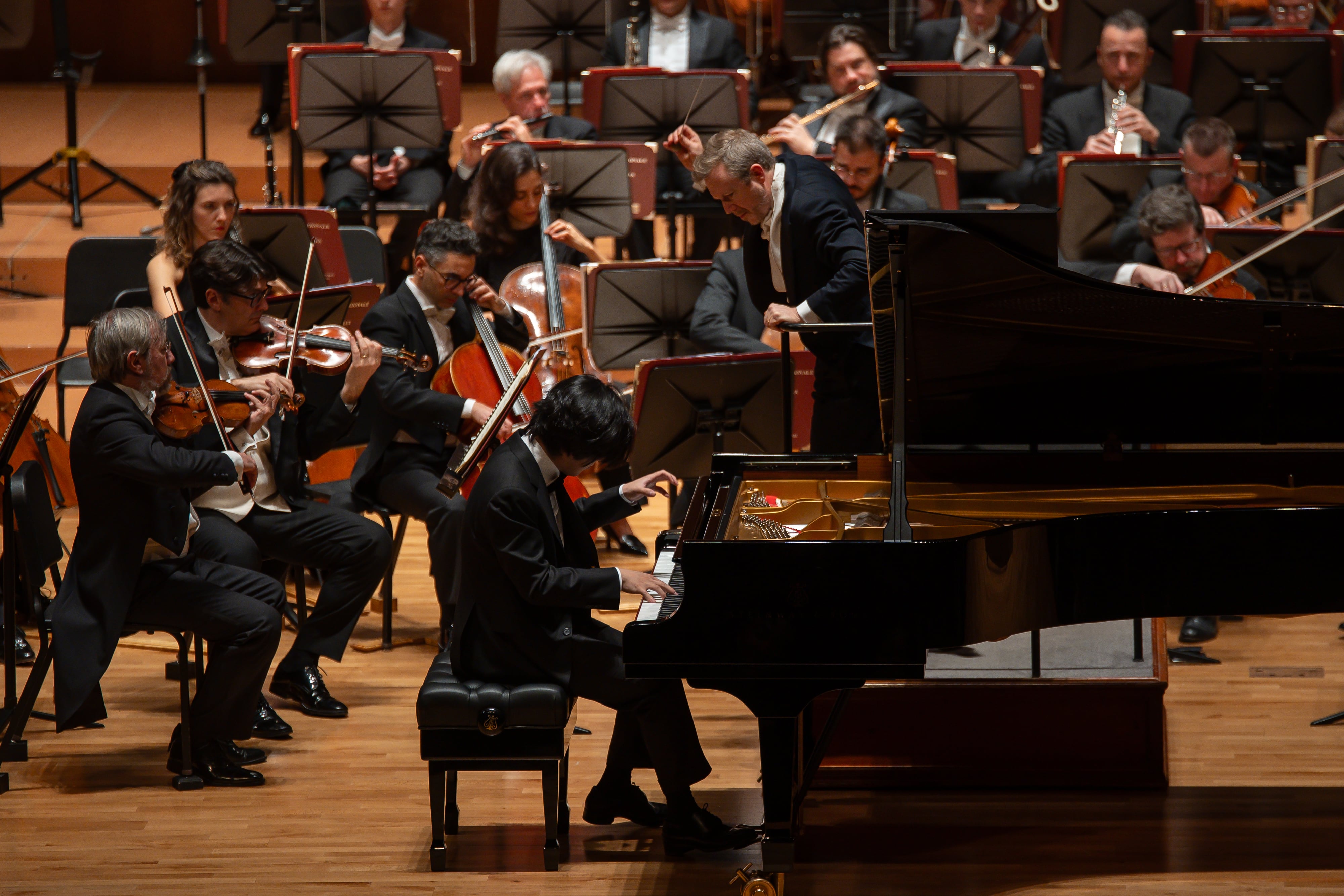 이날 첫 곡이었던 베르디의 ‘운명의 힘’ 서곡은 이탈리아 악단에는 ‘삼시 세끼’와도 같은 필수 연주곡이다. 알프스 북쪽의 짙고 어두운 음색보다는 지중해 특유의 밝고 투명한 금관이 서곡 첫 소절부터 울려 퍼졌다. 현악 역시 누가 일러주지 않아도 자연스럽게 노래하는 것만 같았다. 반면 후반 브람스 교향곡 2번에서는 초반에 서두르지 않고 여유 있게 접근하다가 강약과 빠르기의 대담한 조절을 통해 곡의 굴곡과 깊이를 드러냈다. 특히 마지막 4악장 절정에 들어가기 직전에 한껏 숨죽이다가 막판에 몰아치는 뒷심도 인상적이었다. 관객 박수에 하딩이 무대로 걸어나오면서 악단을 향해 손짓을 보내자 앙코르로 로시니의 ‘윌리엄 텔’ 서곡이 울려 퍼졌다. 역시 ‘지휘대 위의 조종사’다웠다. 임윤찬과 산타 체칠리아 오케스트라의 협연은 5일에도 열린다.