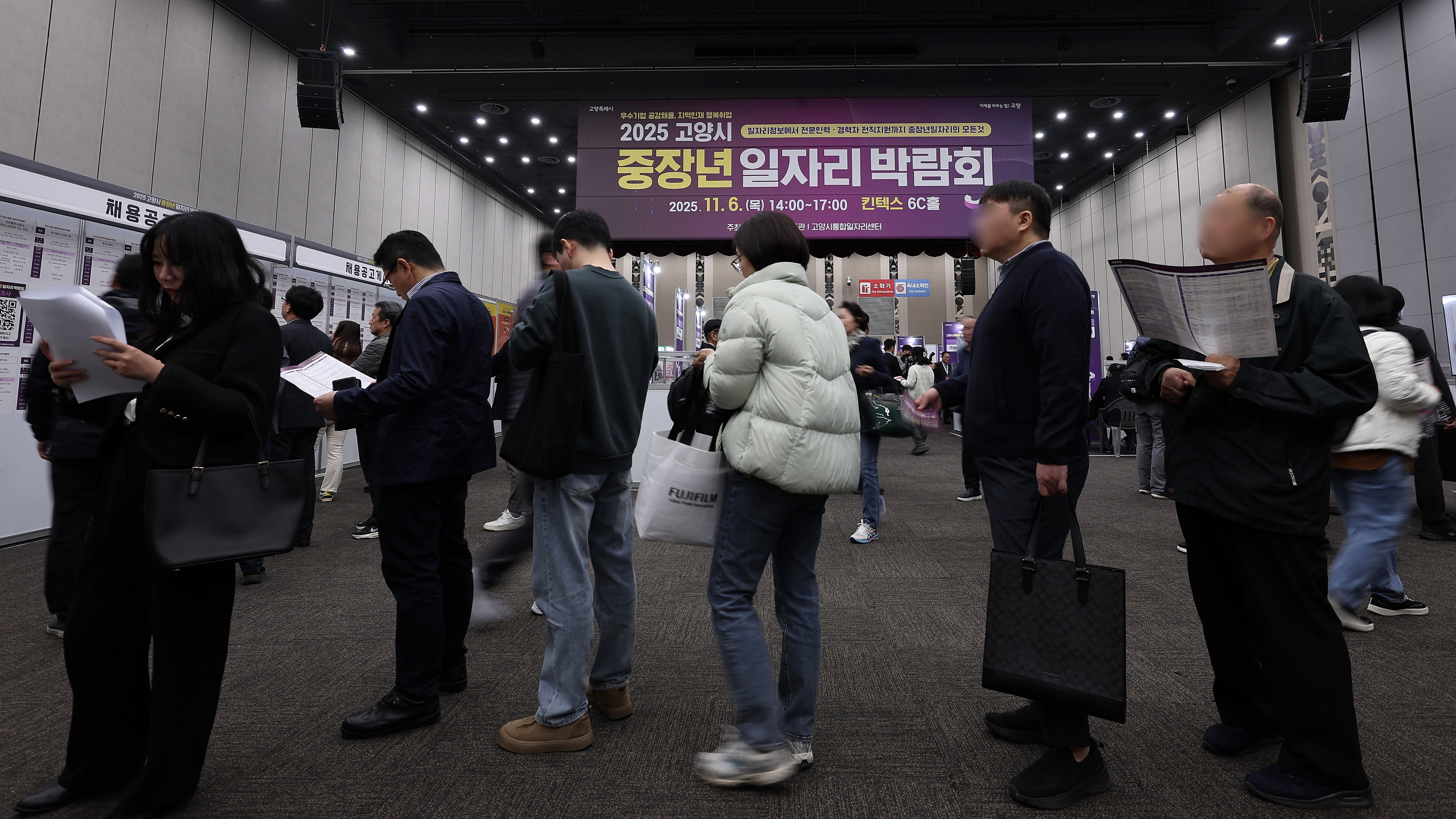 지난 달 6일 경기도 고양시 킨텍스에서 열린 2025 고양시 중장년 일자리 박람회에서 구직자들이 채용 정보를 살펴보고 있다./뉴스1 |