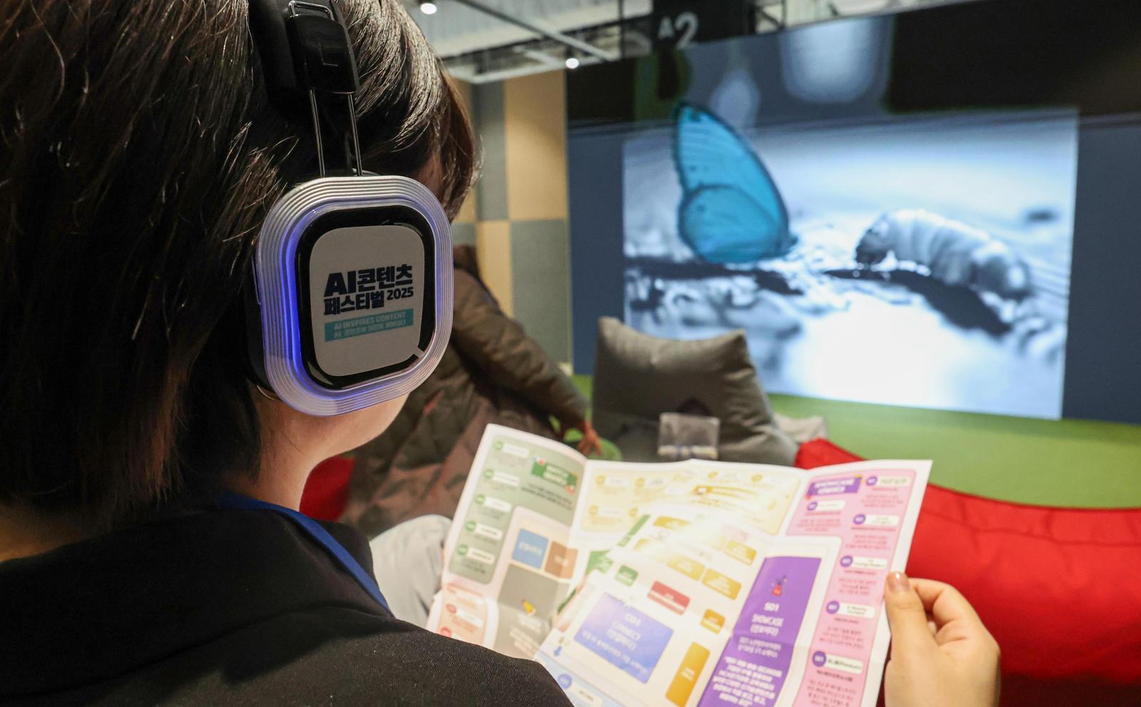 4일 서울 강남구 코엑스에서 열린 ‘AI콘텐츠 페스티벌’에서 관람객이 인공지능(AI)으로 만든 콘텐츠를 체험하고 있다. AI를 기반으로 한 콘텐츠 산업 변화를 다루는 해당 페스티벌은 6일까지 열린다.