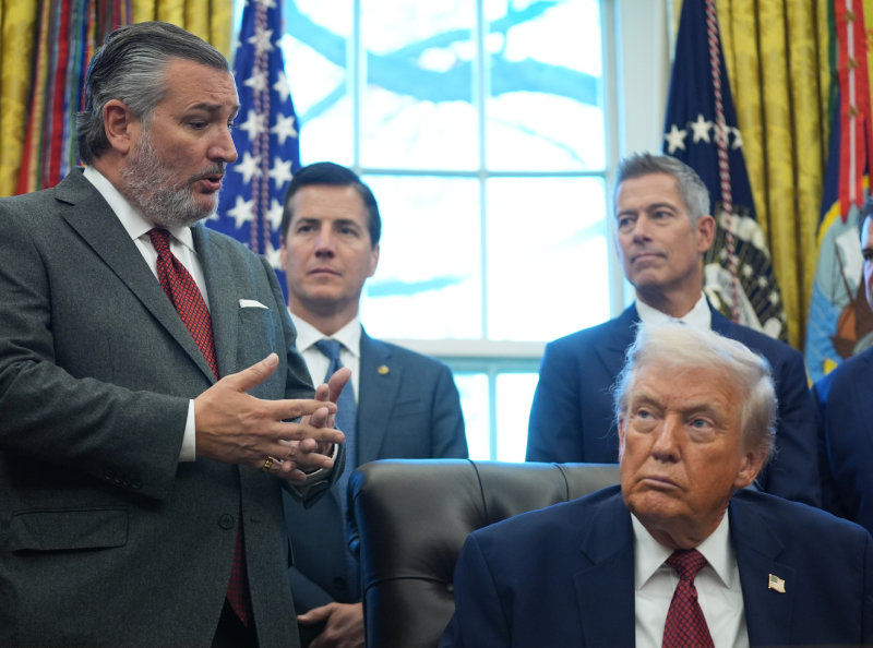 3일 미국 워싱턴 백악관 집무실에서 도널드 트럼프 미국 대통령(오른쪽 아래)이 자동차 연비 규제 완화 조치를 발표한 뒤 배석한 테드 크루즈 공화당 상원의원(왼쪽)의 발언을 듣고 있다. 워싱턴=AP 뉴시스 |