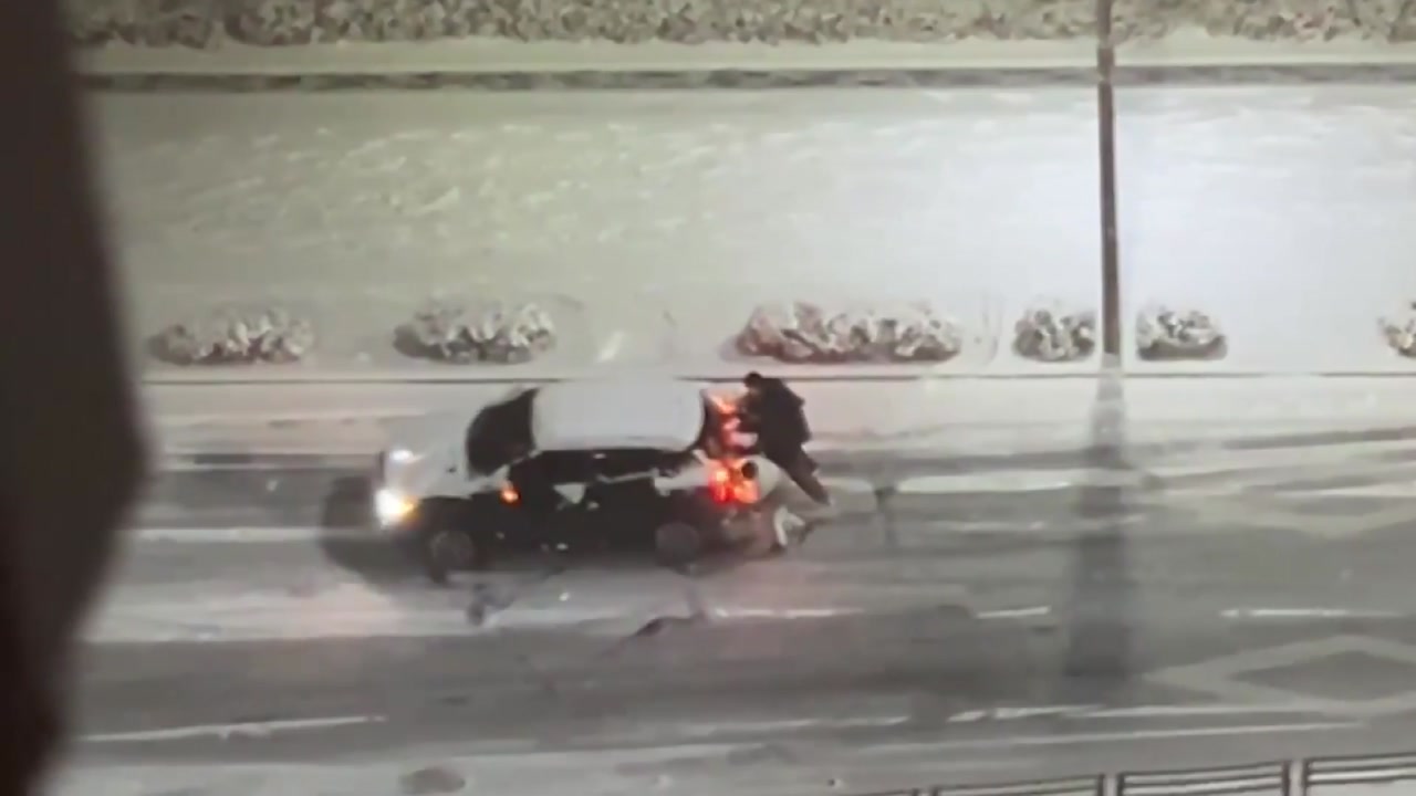 눈길에 움직이지 못하는 다른 차도 밀어줍니다.