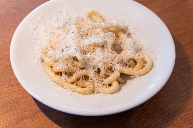 음식을 만드는 건 결국 사람, 셰프죠. 신문기자 출신이자 식당 '어라우즈'를 운영하는 장준우 셰프가 언론의 스포트라이트 너머에서 묵묵히 요리 철학을 지키고 있는 셰프들을 만납니다. 한국 미식계의 최신 이슈와 셰프들의 특별 레시피를 격주로 연재합니다.서울 중구의 이탈리아 음식점 주께로의 피치 카치오 에 페페(Pici cacio e pepe). 지리산 토종 우리밀로 만든 피치 생면에 페코리노 치즈와 후추로만 맛을 낸 이탈리아식 파스타다. |