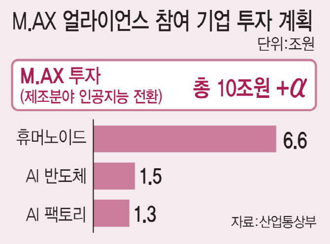 4일 산업통상부에 따르면 M.AX 얼라이언스 참여 기업들은 현재까지 인공지능 전환(AX)을 위해 10조원 이상의 투자의향을 밝힌 것으로 집계됐다. 분야별로 휴머노이드에 6조 6000억원, AI반도체에 1조 5000억원, AI팩토리에 1조 3000억원 등의 투자 수요가 확인됐다.