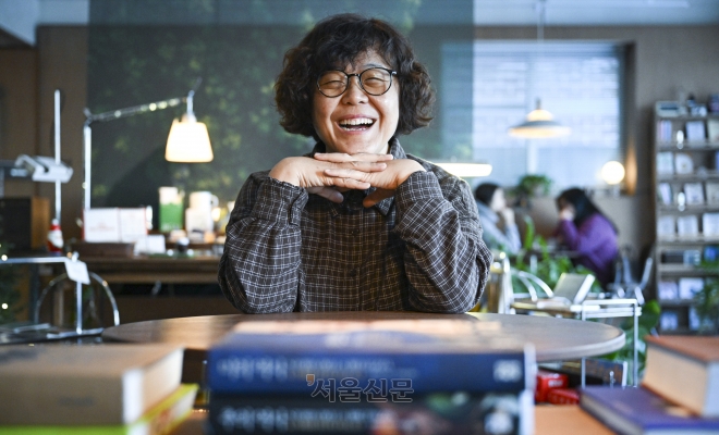 김중미 작가가 지난 2일 서울 강서구의 한 카페에서 “가난한 어린이와 청소년이 어려움을 딛고 성공해 부자가 되게 하는 것이 아니라 가난한 이들을 서로 연결하고 고립되지 않게 연결망을 만드는 일이 자신의 일”이라면서 웃고 있다. 이지훈 기자 |