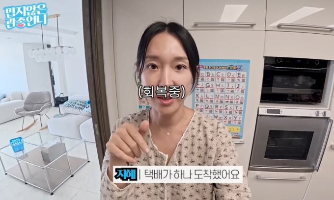 첫 번째 택배 맛집 간장 게장 소개 영상에서 입을 가리지 않았던 이지혜는 두 번째 맛집인 김 택배 언박싱 영상에선 인중을 '회복 중'이라는 자막으로 가린 채 등장했다. 음식을 먹는 과정에서도 해당 자막은 사라지지 않았다.