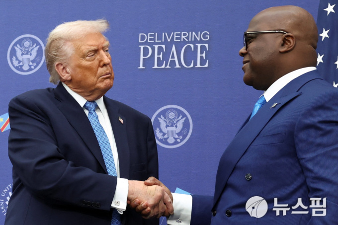 2025년 12월 4일, 미국 워싱턴 D.C.의 미국 평화 연구소에서 열린 서명식에서 도널드 트럼프 미국 대통령이 펠릭스 치세케디 콩고민주공화국 대통령과 악수하고 있다. [사진=로이터 뉴스핌] 박정우 특파원 = 2025.12.05 dczoomin@newspim.com |
