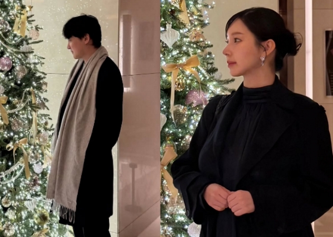 공개된 사진에는 같은 크리스마스트리 앞에서 포즈를 취한 전선욱, 야옹이 작가의 모습이 담겼다.