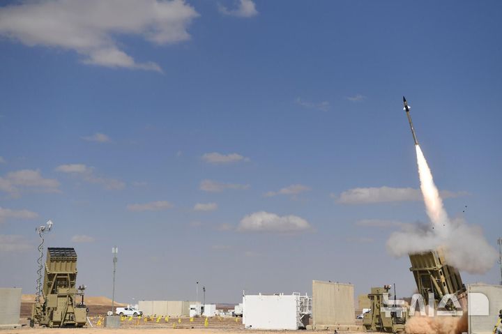 [이스라엘 하이파=뉴시스] 이스라엘 국영 방산기업인 이스라엘항공우주산업(IAI)이 태국 공군에 최신형 바락MX 방어시스템을 제공하기로 했다고 국방부가 12월 4일 발표했다. 사진은 이스라엘의 주력 방공시스템인 아이언돔 미사일 발사 장면. (사진 = 이스라엘 국방부 제공) 2025.12.05. |