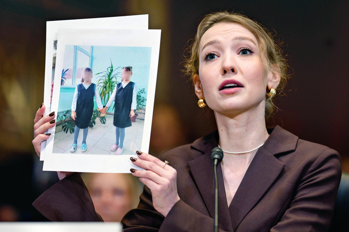 3일(현지시간) ‘우크라이나 지역인권센터’ 소속 변호사 카테리나 라셰프스카가 미국 워싱턴DC 상원 청문회에서 러시아군이 납치한 우크라이나 어린이와 청소년 중 최소 2명이 북한 소용소로 강제 이송됐다고 주장하고 있다. 우크라이나는 약 2만명의 자국 어린이와 청소년이 납치됐으며, 이 중 상당수가 유럽과 북한 등에 위치한 165개 수용소에 이송됐다고 추정하고 있다. 관련기사 A8면 [AFP연합뉴스] |