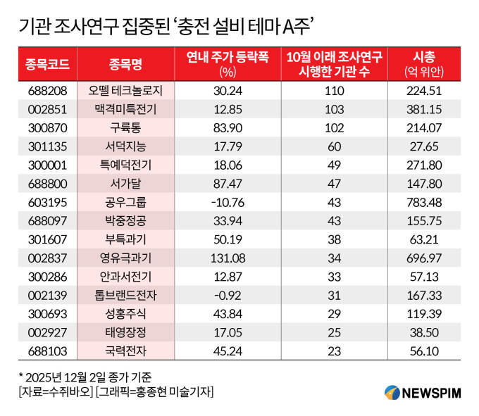 ◆ '기관관심도+저평가 매력' 충전설비 테마주
