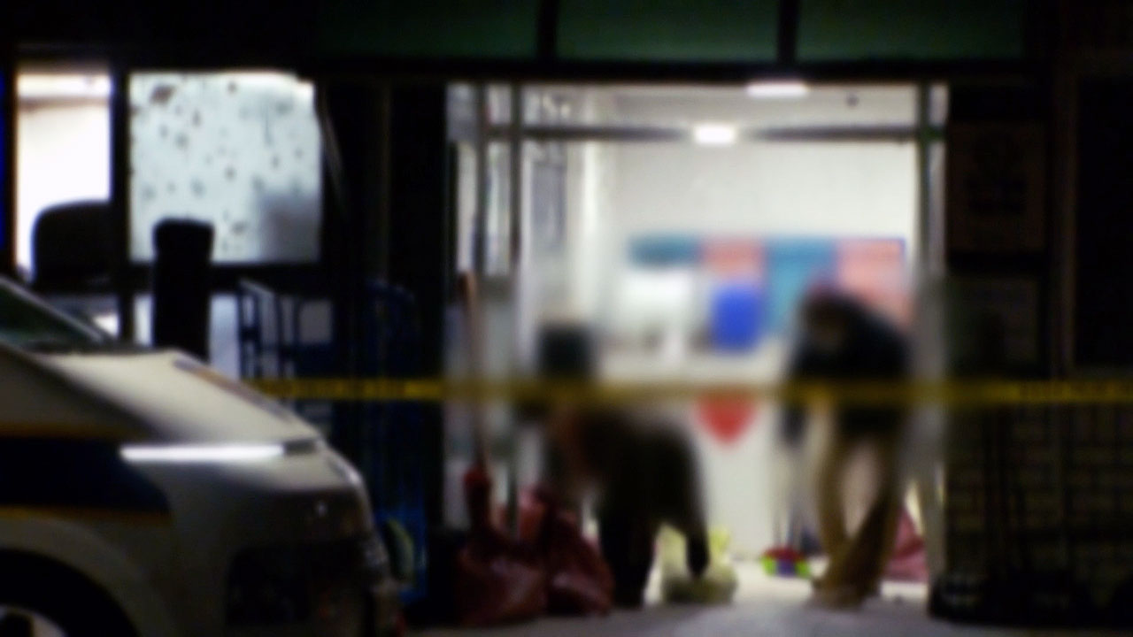 깨진 유리 조각과 파편 사이, 핏자국이 남아 있습니다.