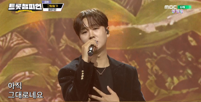 송민준은 4일 오후 8시 방송된 MBC ON ‘트롯챔피언’에 출연해 첫 미니앨범 ‘Prologue’(프롤로그)의 타이틀곡 ‘그림일기’를 선보였다.