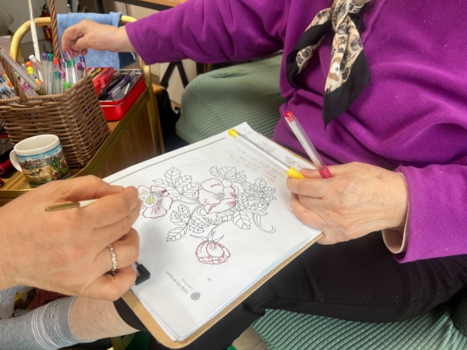 김씨는 '색칠공부'라는 새로운 취미도 생겼다. 김 보호사가 그림 모임에서 배워온 기법을 하나씩 알려주면서 흥미를 갖기 시작했다. 필요한 용품이 있으면 김 보호사는 직접 미술용 가재도구를 사다 준다.