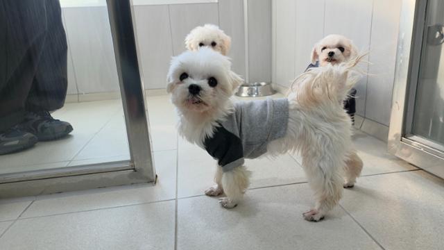 지난달 11일, 경기 남양주시 동물자유연대 보호소 '온센터'에서 만난 말티즈 종 반려견 '츄츄'의 모습. 츄츄는 처음 보는 사람들에게도 낯을 가리지 않고 다가와 인사를 시도했다. 동그람이 정진욱 |