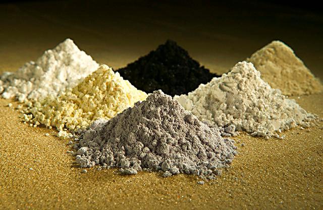 중국이 패권을 쥐고 있는 다양한 희토류들. 가운데 검은색부터 시계 방향으로 프라세오디뮴, 세륨, 란탄, 네오디뮴, 사마륨, 가돌리늄. 미국 농무부 제공 |