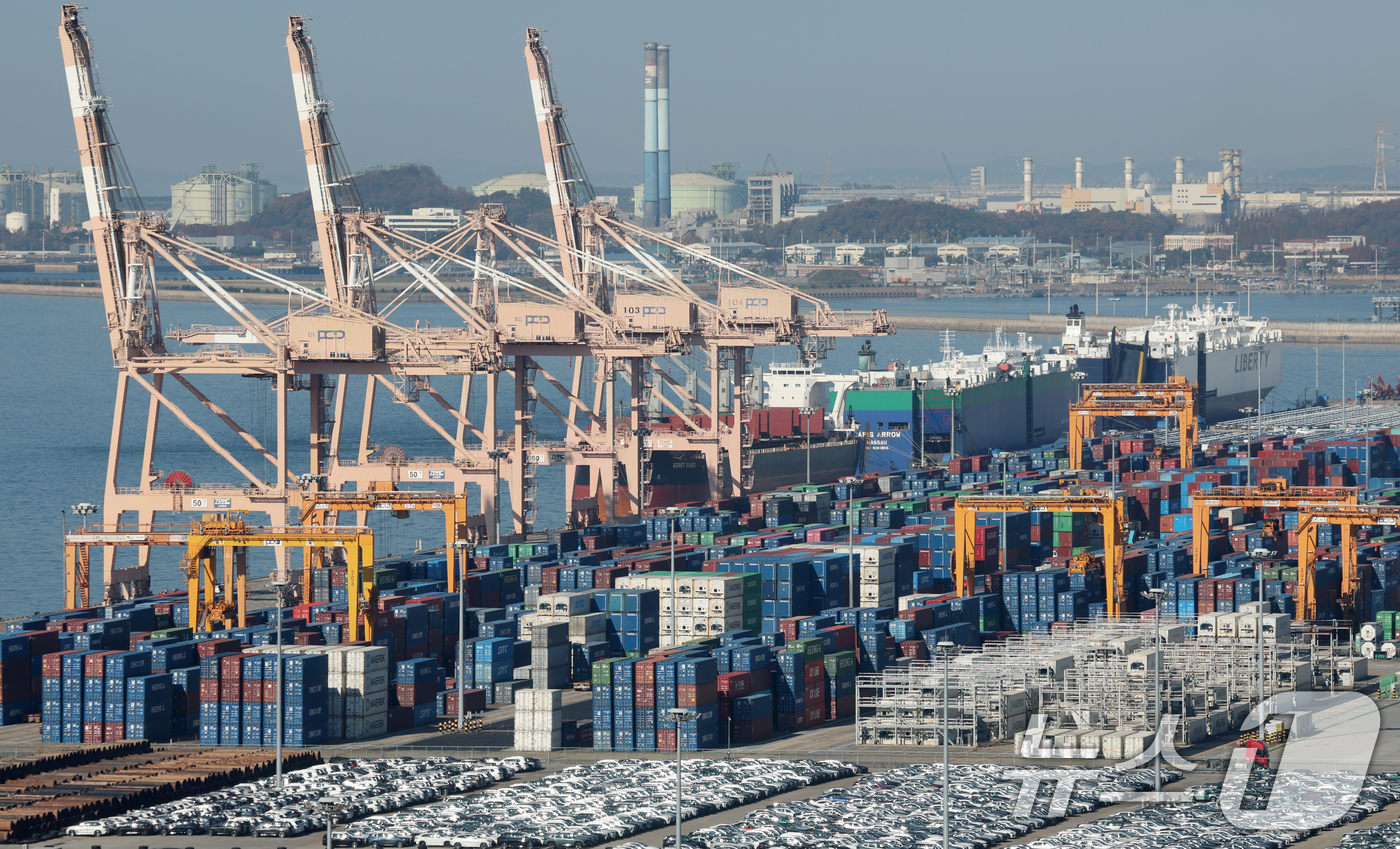 경기 평택시 포승읍 평택항에 수출용 컨테이너들이 쌓여있는 모습. 2025.11.14/뉴스1 ⓒ News1 김영운 기자 |