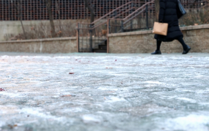 전날(4일) 저녁부터 내린 요란한 첫눈이 그친 후 기온이 뚝 떨어지면서 오늘(5일) 아침 빙판길과 도로 살얼음, 결빙이 나타나는 곳이 많아 주의가 필요하다./사진=뉴시스 |