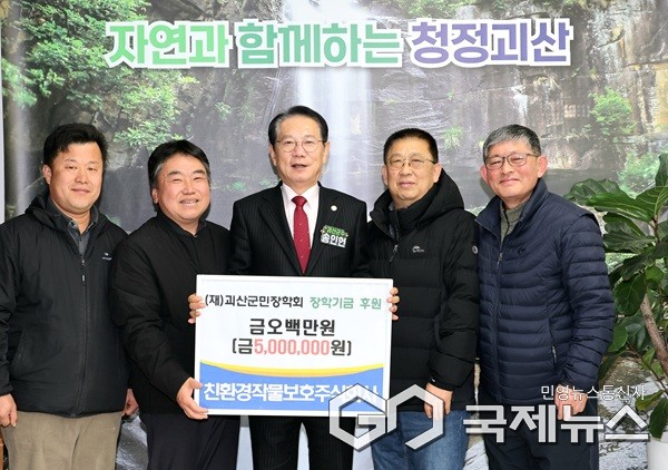 (괴산=국제뉴스) 이재기 기자 = 충북 괴산군(군수 송인헌)은 4일 친환경작물보호주식회사(대표 신원우)가 괴산군민장학회에 장학금 500만 원을 기탁했다고 밝혔다.