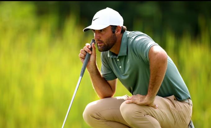 [서울=뉴스핌] 장환수 스포츠전문기자= 스코티 셰플러가 5일 히어로 월드 챌린지 1라운드에서 그린 경사를 살피고 있다. [사진=PGA] 2025.12.05 zangpabo@newspim.com |