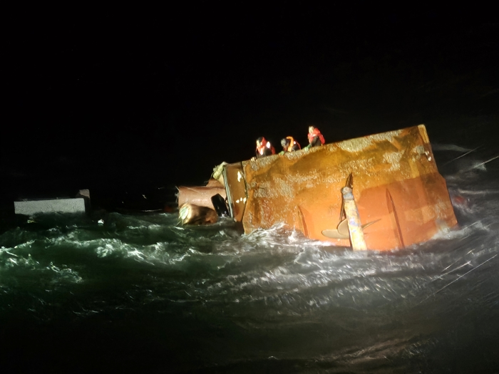 사고 선박에 타고 있던 40대 선장은 아직 실종 상태다. 해경은 경비함정 12척과 연안구조정 1척, 항공기 3대 등을 투입하고, 민·관·군 합동 구조 작업을 통해 실종자 수색과 구조에 주력하고 있다. 해경은 정확한 사고 경위도 조사 중이다.