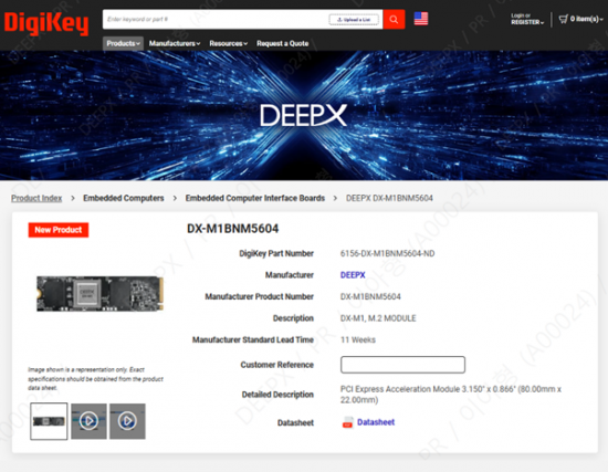 인공지능(AI) 반도체 기업 딥엑스가 글로벌 최대 규모의 전자부품 유통·솔루션 기업 디지키(DigiKey)를 통해 AI 가속기 제품군을 전 세계 시장에 공급한다. 딥엑스 |