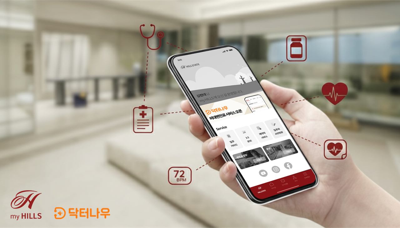 현대건설은 자체 입주민 전용 플랫폼인 ‘마이힐스(my HILLS)’ 앱에 닥터나우 앱을 연동해 비대면진료 서비스를 이용할 수 있도록 제공하고 있다. 마이힐스 앱은 힐스테이트 브랜드 아파트에서 만나볼 수 있다.