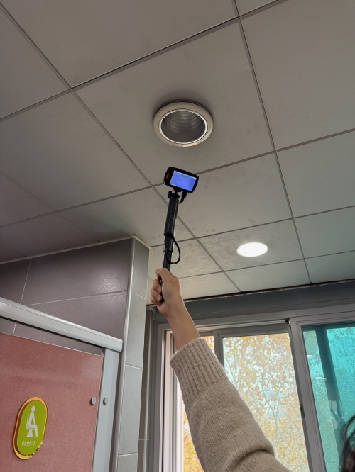 서울 구로구 관계자가 불법 촬영 탐지기로 화장실을 점검하고 있다. 구로구 제공 |