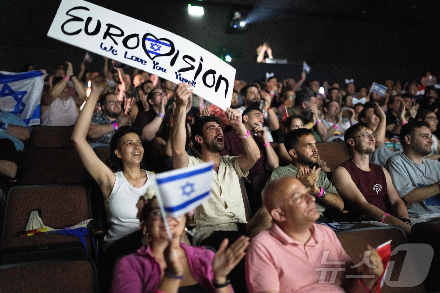 (텔아비브 AFP=뉴스1) 윤다정 기자 = 5월 17일(현지시간) 이스라엘 텔아비브의 한 커뮤니티 센터에서 '2025 유로비전 송 콘테스트' 결승전이 생중계되고 있다. 2025.05.17. ⓒ AFP=뉴스1