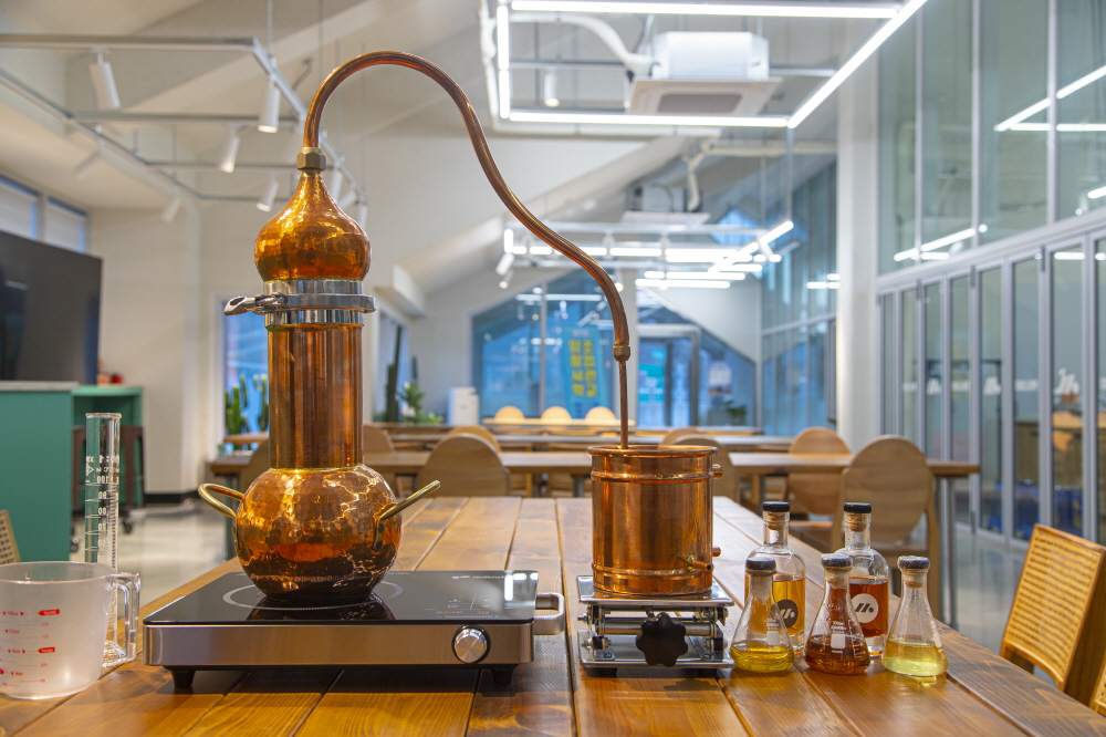 술지움에서는 막걸리, 증류주, 뱅쇼, 모주 등 다양한 술 체험이 가능하다. 막걸리 술빵과 비누 만들기 체험도 있어 가족, 어린이 여행객에게 추천할 만하다. 증류주 체험은 1L 막걸리로 약 150ml 증류주를 만들고, 치자나 히비스커스를 올려 색을 입히는 과정까지 체험할 수 있다. 완성된 증류주는 38~39도 정도다.