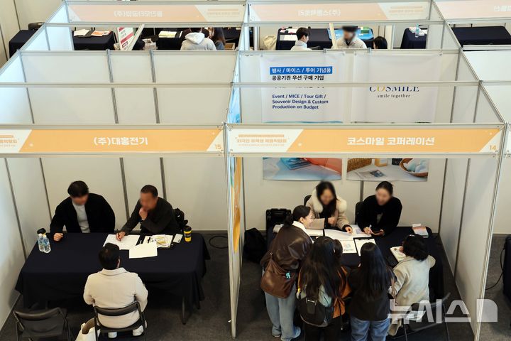 [부산=뉴시스] 하경민 기자 = '2025년도 K-수출전사 아카데미 외국인 유학생 채용박람회'가 열린 지난달 28일 부산 금정구 부산외국어대학교 만오기념홀에서 외국인 유학생들이 취업상담을 받고 있다. 이날 행사에는 31개 기업과 유관기관 7곳 등이 참가해 외국인 유학생을 대상으로 취업상담을 진행했다. 2025.11.28. yulnetphoto@newsis.com |