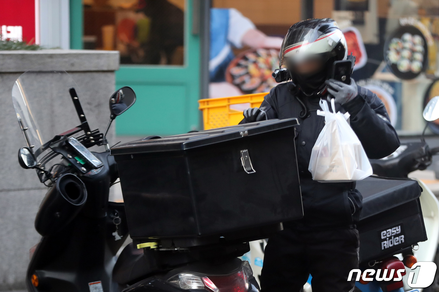 서울 강남역 인근에서 배달노동자가 배달을 하는 모습. 2022.12.27/뉴스1 ⓒ News1 황기선 기자 |