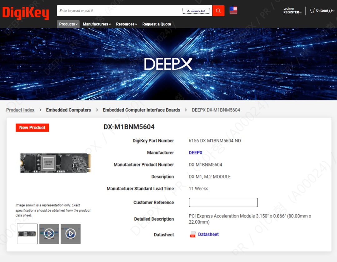 디지키에서 구매할 수 있는 딥엑스 제품./딥엑스 |