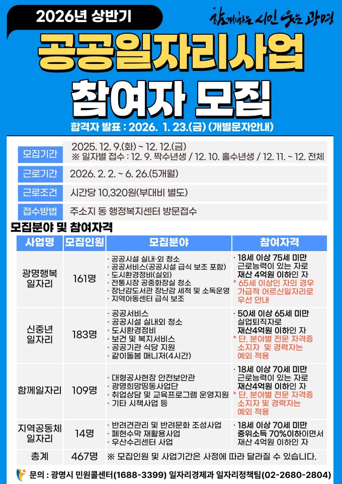 2026년 상반기 공공일자리사업 참여자 모집 안내문. [사진=광명시] |