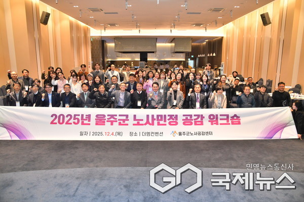 (울주=국제뉴스) 주영곤 기자 = 울주군노사공감센터(센터장 김재인)가 지난 4일 울주군 삼남읍 더M컨벤션에서 이순걸 울주군수와 최길영 군의회 의장 등 울주군 노사민정협의회 위원을 비롯한 관계자 60여명이 참석한 가운데 '2025년도 울주군 노사민정 공감 워크숍'을 개최했다.