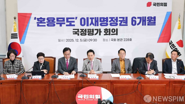 [서울=뉴스핌] 윤창빈 기자 = 장동혁 국민의힘 대표가 5일 서울 여의도 국회에서 열린 '혼용무도' 이재명정권 6개월 국정평가 회의에서 모두발언을 하고 있다. 2025.12.05 pangbin@newspim.com