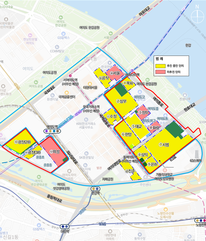 서울시는 ‘2040 서울도시기본계획’을 통해 여의도를 국제 금융 중심지로 육성하고 글로벌 핵심 거점으로 성장할 수 있도록 기업 유치 등 정책적 지원에 나설 예정이다. 재건축을 통해 한강변 스카이라인을 대대적으로 재편하고 주거·업무가 복합적으로 어우러지는 메가클러스터를 조성한다는 구상이다. 여의도 한강변 재건축 사업이 여의도 발전 계획의 핵심으로 자리하는 셈이다.