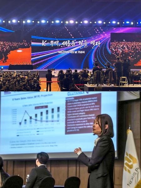프리미엄 스킨케어 브랜드 글루타넥스(GLUTANEX)를 이끌고 있는 넥서스파마㈜ 현유진 대표가 지난 4일, 서울 코엑스에서 열린 ‘제62회 무역의 날’ 기념식에서 국무총리 표창을 수상했다.