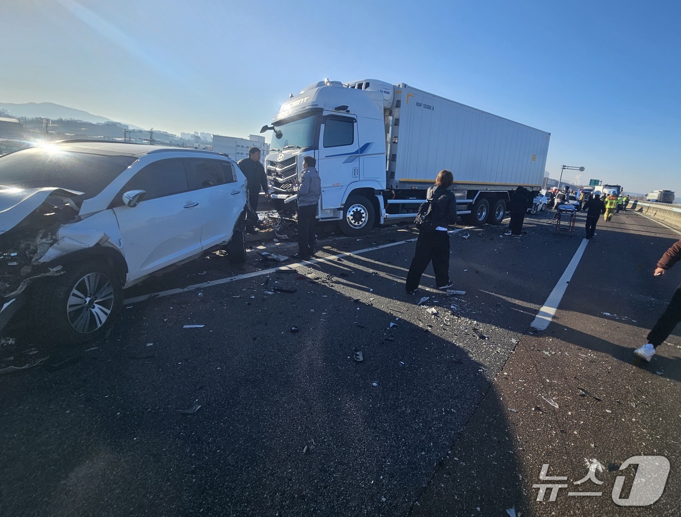 5일 오전 9시 10분쯤 충북 청주시 청원구 오동동 3순환로에서 차량 9대가 연쇄 추돌했다.(청주동부소방서 제공. 재판매 및 DB금지)/뉴스1 |