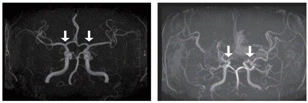 [사진 왼쪽부터] 정상 및 모야모야병 환자의 뇌혈관 |