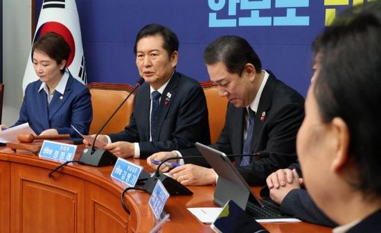 정청래 더불어민주당 대표가 5일 국회에서 열린 최고위원회의에서 발언하고 있다.