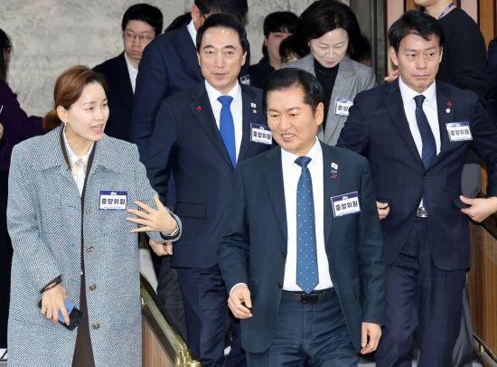 정청래 더불어민주당 대표가 5일 국회에서 열린 제3차 중앙위윈회의에 참석하고 있다.