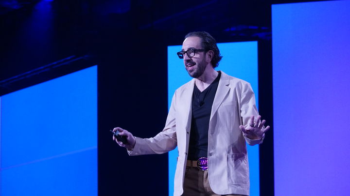 피터 드산티스 AWS 유틸리티 컴퓨팅 총괄 수석 부사장이 미국 라스베이거스에서 열린 리인벤트에서 그래비톤5를 소개 하고 있다(사진=AWS코리아 제공) *재판매 및 DB 금지 |