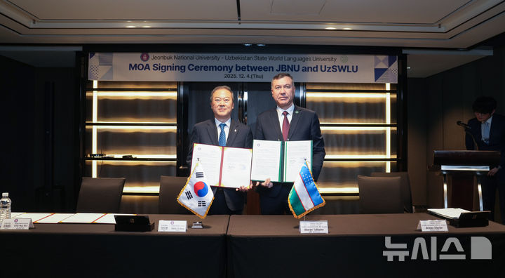 [전주=뉴시스] 윤난슬 기자 = 전북대학교는 전날 우즈베키스탄 국립세계언어대학과 복수학위제 시행을 포함한 국제 교류 협력 확대에 합의했다고 5일 밝혔다.