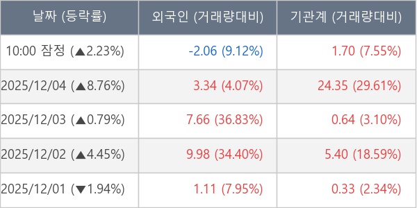 ※ 사모펀드 등 일부 기관의 순매매량은 표시되지 않음