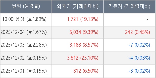 [장중수급포착] 상신브레이크, 외국인 8일 연속 순매수행진... 주가 +1.89%