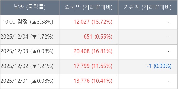 [표] 외국인ㆍ기관 순매매량 (단위 주)