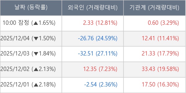 ※ 사모펀드 등 일부 기관의 순매매량은 표시되지 않음