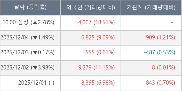 [표] 외국인ㆍ기관 순매매량 (단위 주)